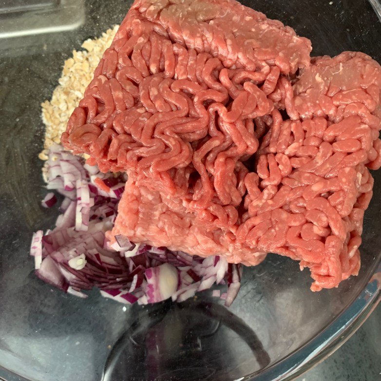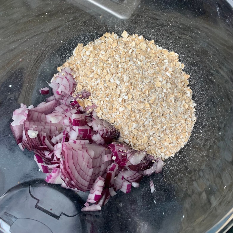 - Porridge oats – about the same amount as you have chopped onion